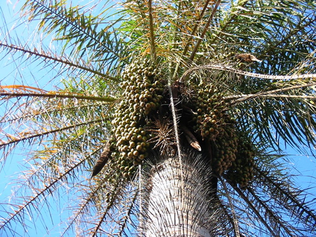 Acrocomia mexicana Karw. Palma espinosa de 10 a 20 m; hojas pinadas; fruto esférico de cuatro a cinco cm, con un mesocarpio mucilaginoso y un endocarpio leñoso muy duro, con almendra oleaginosa. En el estado se localiza en los municipios aledaños a las costas, puesto que su desarrollo es en suelos arenosos y de clima …